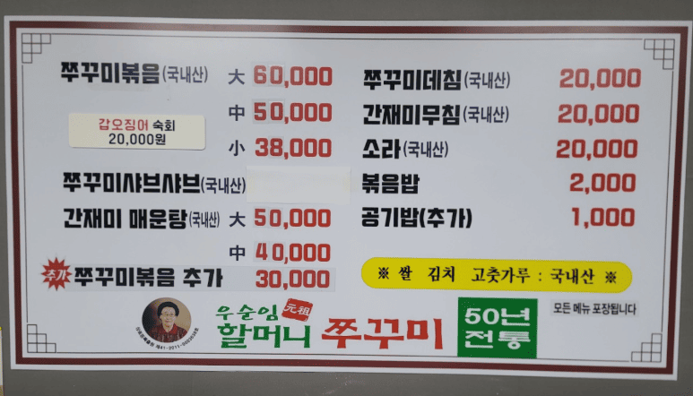 그럼 지금부터 오늘N 할매식당 쭈꾸미볶음 맛집 인천 우순임원조 할머니쭈꾸미에 관한 정보와 대표 메뉴, 가격을 간략히 안내해 드리겠습니다.
