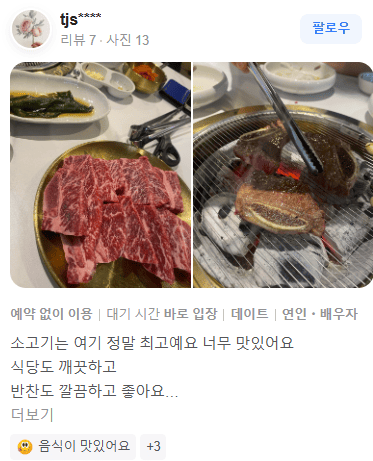 네이버 리뷰보다 카카오맵 리뷰가 더 신뢰가 가신다면, 아래에서 생방송 투데이 생소갈비 맛집 설화정생갈비의 카카오맵 리뷰를 더 보실 수 있습니다.