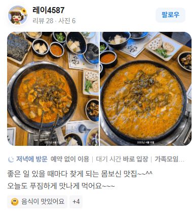 "좋은 일 있을 때마다 찾게 되는 몸보신 맛집입니다."