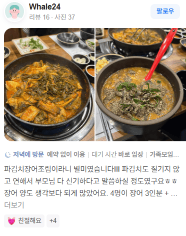 "진짜 장어랑 파김치가 왜이렇게 잘 어울리는지, 여전히 맛있고 친절하세요."