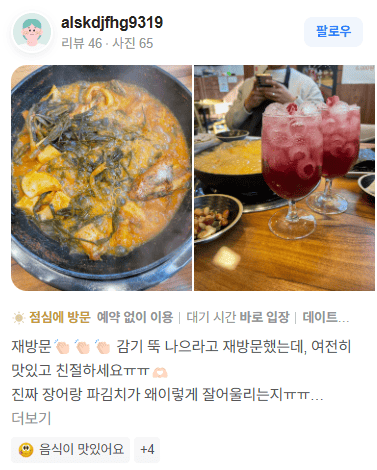 네이버 리뷰보다 카카오맵 리뷰가 더 신뢰가 가신다면, 아래에서 산수가장의 카카오맵 리뷰를 더 보실 수 있습니다.