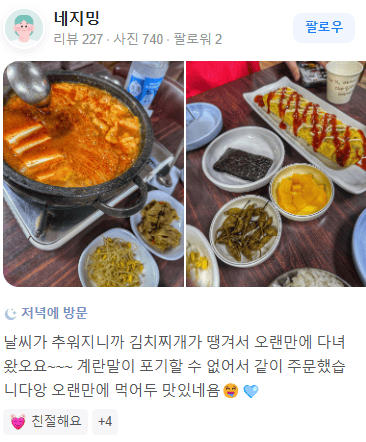 "양 많고 맛있습니다. 치즈계란말이도 꼭 시키셔요."