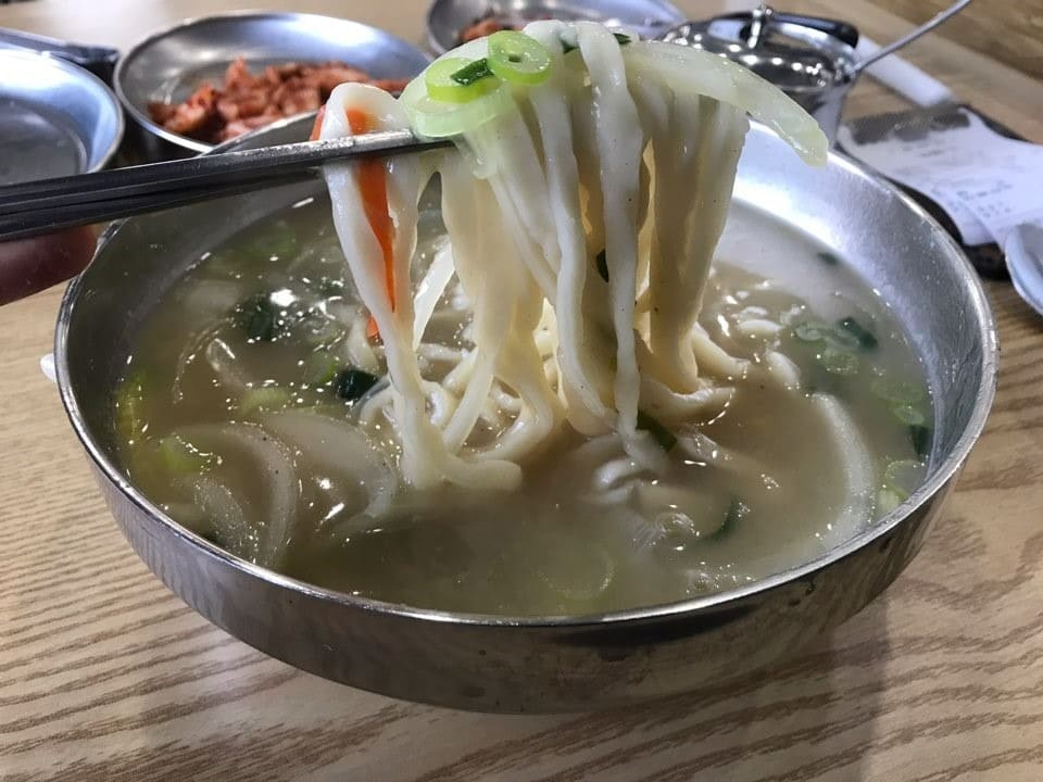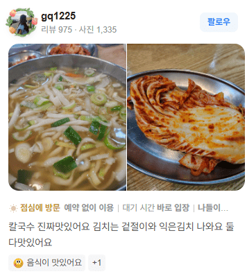 "칼국수 진짜 맛있네요. 줄 서는 데는 이유가 있어요."