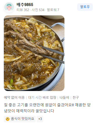 네이버 리뷰보다 카카오맵 리뷰가 더 신뢰가 가신다면, 아래에서 매운돼지등갈비찜의 카카오맵 리뷰를 더 보실 수 있습니다.