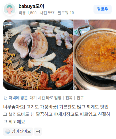 "너무 좋아요! 고기도 가성비도 굿! "