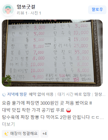"요즘 물가에 짜장면 3000원인 곳 처음 봤어요."