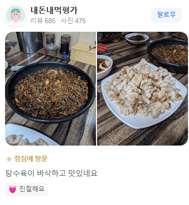 "탕수육이 바삭하고 맛있네요."