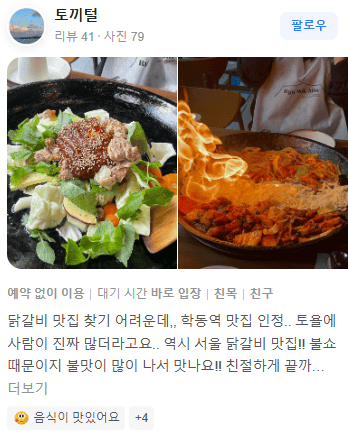 "닭갈비 맛집 찾기 어려운데, 학동역 맛집 인정."