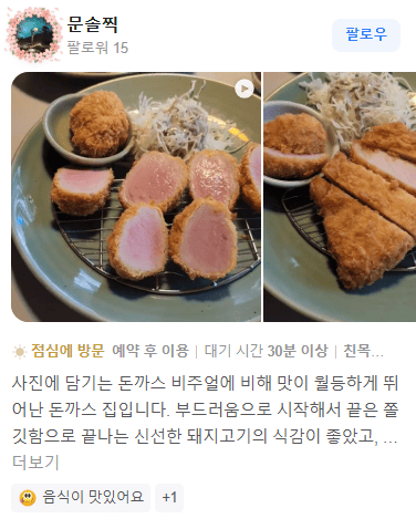 네이버 리뷰보다 카카오맵 리뷰가 더 신뢰가 가신다면, 아래에서 일식 돈가스 맛집 헤키의 카카오맵 리뷰를 더 보실 수 있습니다.