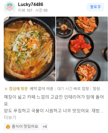 네이버 리뷰보다 카카오맵 리뷰가 더 신뢰가 가신다면, 아래에서 생생정보 얼큰 소고기국밥 샌프란시스코 국밥의 카카오맵 리뷰를 더 보실 수 있습니다.