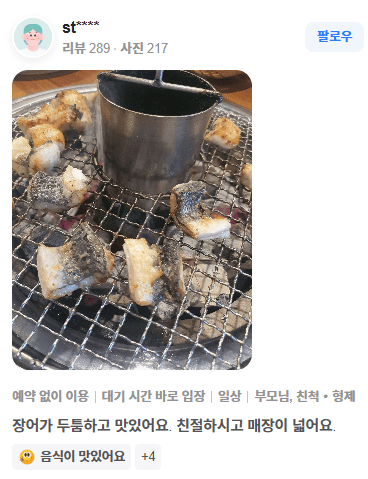 "장어가 두툼하고 맛있어요. 친절하시고 매장이 넓어요."
