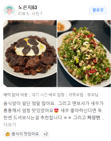 "트러플짜장면 궁금해서 친구들이랑 방문했는데, 짬뽕이랑 멘보샤까지 너무너무 맛있게 잘 먹었습니다."