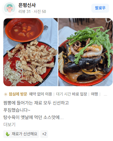 "해산물이 푸짐하게 들어 있어서 국물이 시원하고 맛있었어요."