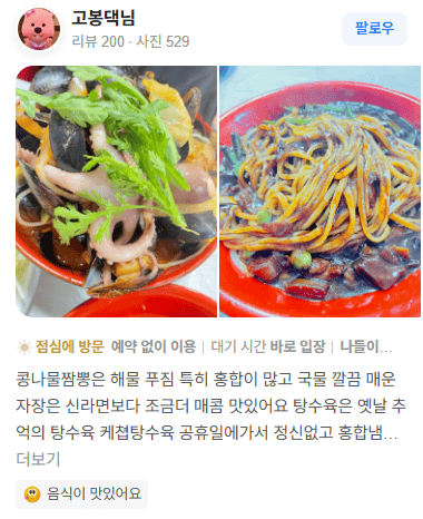 네이버 리뷰보다 카카오맵 리뷰가 더 신뢰가 가신다면, 아래에서 왕산중화요리 군산의 카카오맵 리뷰를 더 보실 수 있습니다.