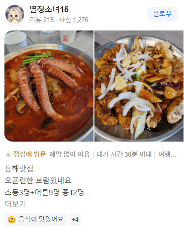 간략하게 이 곳을 소개해 드리자면, 강원도 동해시 묵호항에 위치한 바다가 보이는 문어탕수육, 문어짬뽕 맛집입니다. 리얼문어탕수육은 100% 문어를 사용하고 밀가루대신 전분을 사용하여 겉은 바삭하고 속은 쫀득한 맛을 살린 문어탕수육과 큼직한 문어가 들어간 맛있게 매콤한 문어짬뽕이 유명한 동해 묵호항 맛집입니다.