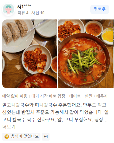 아래는 하니칼국수의 후기 및 리뷰입니다.