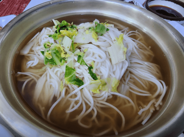 "멸치 육수 같은 것에 배추가 좀 있는 국수인데, 별 거 없어 보이는데 되게 맛있게 먹었습니다."